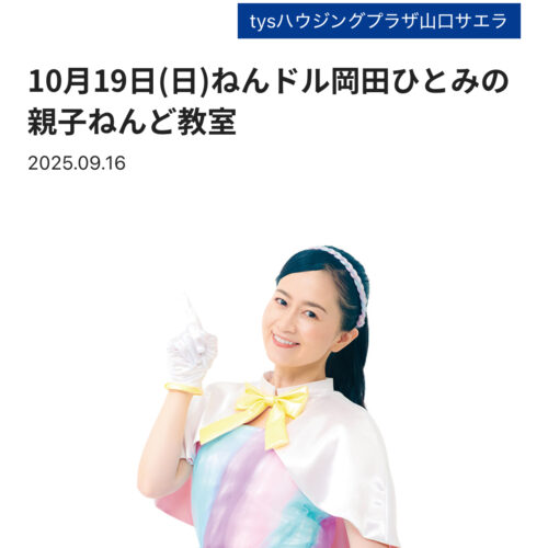 【抽選】tysハウジングプラザ山口 サエラで ねんドル岡田ひとみの親子ねんど教室