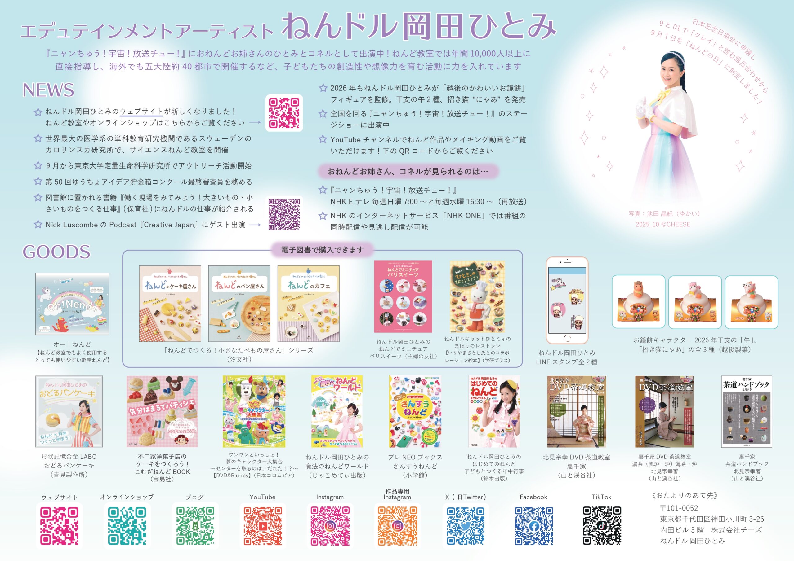 『不二家洋菓子店のケーキをつくろう!こむぎねんどBOOK』(宝島社)のねんど作品を監修。NHK総合『あさイチ』に作品提供とレポーターで出演。